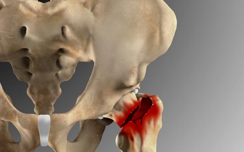 Breaking a portion of your hip is never a pleasant experience, but fortunately innovations in repairing them are on the rise. This image is one in a series of images made to help illustrate the many devices Stryker has to offer. To see the full line, visit Stryker’s website. This image represents a Garden 4 style fracture as seen from the anterior view. We see a complete break along with some displacement of the broken femur. For the repair, an Omega3 Compression Hip Screw is used to hold the injury together.