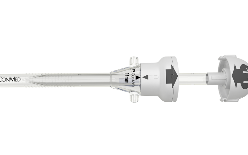 The ConMed Entriport Trocar has air seals which allow the cannula to stay intact while the obturator is removed thus reducing loss of pneumo